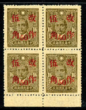 China 1943 Wartime 50¢/16¢ East Szechwan Scott 530f50 Mint BLOCK N584