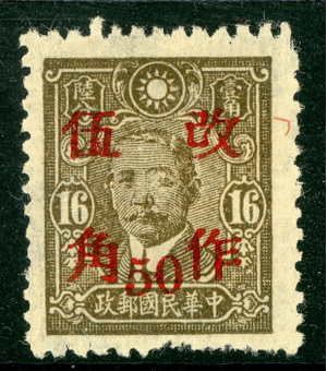 China 1943 Wartime 50¢/16¢ GPO Scott 530v PERFORATION 11½ Mint S905
