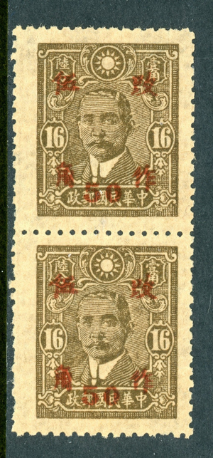 China 1943 Wartime 50¢/16¢ Hunan Pair Sc#530c50 Mint O756