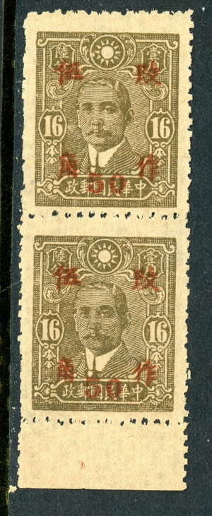 China 1943 Wartime 50¢/16¢ Hunan Scott 530c50 Mint PAIR N578