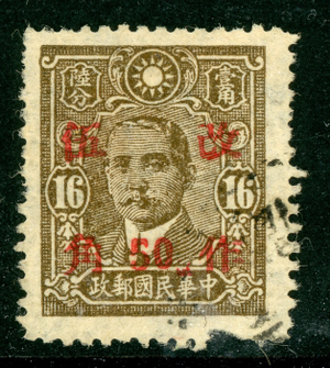 China 1943 Wartime 50¢/16¢ West Szechuan Scott 530k50 VFU S910