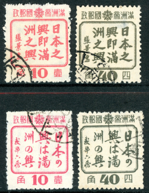 China 1944 Manchukuo Japan Progress Issue Scott #154-57 VFU V414