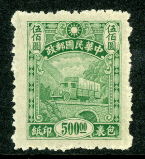 China 1945 Republic $500 Green First Parcel Post Scott #Q1 Mint W76