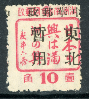 When the change in currency took place the domestic letter rate was 10 Manchukuo fen, after 15th January 1946 this changed to 1 North-Eastern Yuan, essentially half the rate.  This currency change is likely to be the reason for the many surcharged issues and would logically indicate that surcharged stamps date from after January 1946, this might or might not be the case.