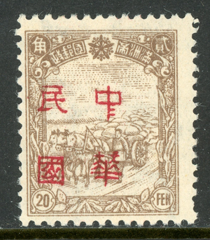 When the change in currency took place the domestic letter rate was 10 Manchukuo fen, after 15th January 1946 this changed to 1 North-Eastern Yuan, essentially half the rate.  This currency change is likely to be the reason for the many surcharged issues and would logically indicate that surcharged stamps date from after January 1946, this might or might not be the case.