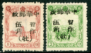 China 1946 Manchukuo Local OP - MU TAN KIANG - 1-2 fen -Kerr #147.1-2 Mint H921