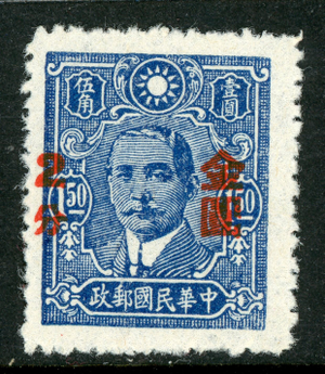 China 1948 Gold Yuan 2¢/$1.50 Foreign White Paper Perf 13 Scott #824v MNH R394