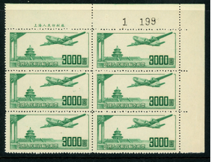 China 1949 First Airmail Issue 3000 Yuan Inscription Block Scott #C2 Mint U265