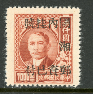 China 1949 Hunan Province OP Registration Sc# F1 Mint Z531