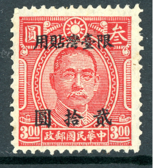 China 1949 Taiwan $20/$3 Carmine Forerunner Scott #98v VFU O860