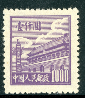 China 1950 1st Gate 1000 Yuan Violet PRC R1 Scott #16 Mint N732