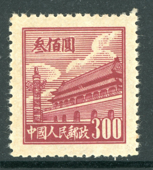 China 1950 1st Gate 300 Yuan Red Brown PRC R1 Scott #13 Mint N729