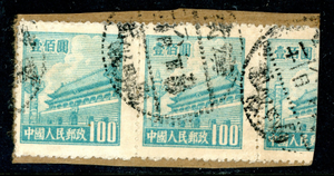 China 1950 PRC $100 Blue 3rd Gate Early Postal History Sc #65 On Piece U528