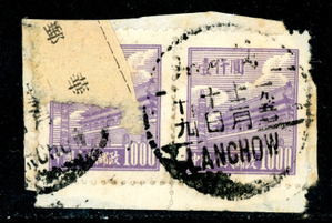 China 1950 PRC $1000 Violet 1st Gate Early Postal History Sc #16 On Piece U445