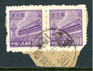 China 1950 PRC $1000 Violet 4th Gate Early Postal History Sc #91 On Piece U455