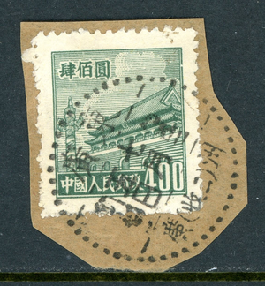 China 1950 PRC $400 Green 4th Gate Early Postal History Sc #88 On Piece U458