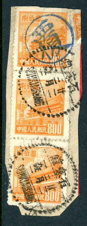 China 1950 PRC $800 Orange 3rd Gate Early Postal History Sc #70 On Piece U522