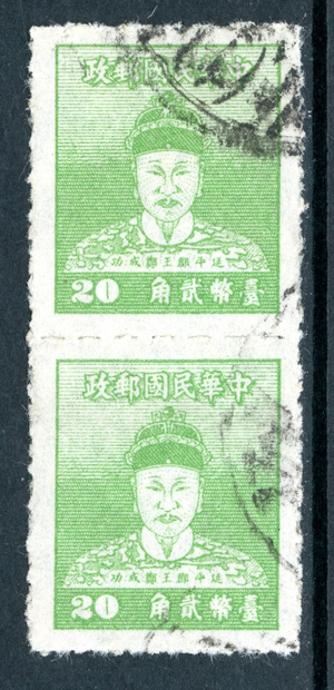 China 1950 Taiwan 20¢ Koxinga Scott 1015 Pair VFU O887