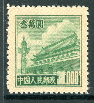 China 1951 5th Gate 30,000 Yuan Green PRC R5 Scott #97 Mint N762