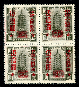 China 1951 PRC $50/$50.00 Gray Block Sc #115 Mint O277