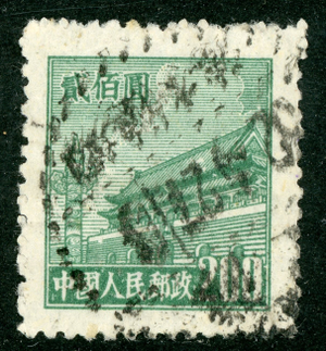 China 1951 PRC Definitive R4 $200 Green Gate Northeast CDS Scott 86 VFU I592