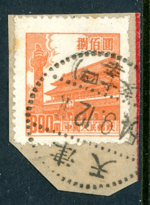 China 1954 PRC $800 Orange 6th Gate Early Postal History Sc #211 On Piece U532