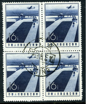 China 1957 PRC 16¢ Airmail Block Full Dated CDS C1