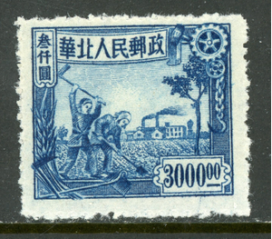 East China 1949 Liberated $3,000 Harvesting Scott #3L87 Mint G116