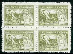 East China 1949 PRC Liberated $100.00 Revolution & Map Sc #5L42 Block Mint F855