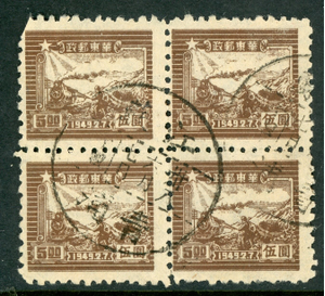 East China 1949 PRC Liberated $5.00 Train & Runner Sc #5L24 Block VFU U216