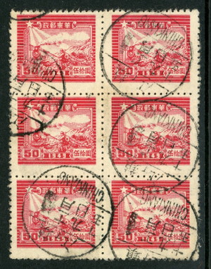 East China 1949 PRC Liberated $50.00 Train & Runner Sc #5L66 Block VFU U39