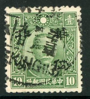 North China 1942 Japan Occ Full Value 10¢ Chunghwa Sc #8N9 VFU J582⭐