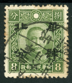 North China 1942 Japan Occ Full Value 8¢ Chunghwa Reeng Sc #8N7 VFU J606⭐