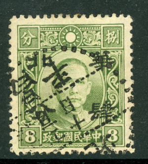 North China 1942 Japan Occ Full Value 8¢ Dahtung Olive Green Sc #8N17 VFU J538⭐