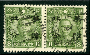 North China 1942 Japanese Occ Full Value 8¢ ChungHwa Reeng Sc #8N8 VFU J590⭐