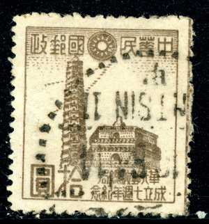 North China 1943 Japan Anniversary of Post $10 GBrown Sc #8N120 VFU Q103