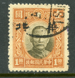 North China 1943 Japanese Occ $1.00 White Paper VFU J430 ⭐⭐⭐