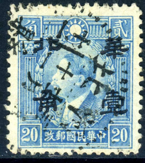 North China 1943 Japanese Occ 20¢ Full Value HK Martyr VFU F528