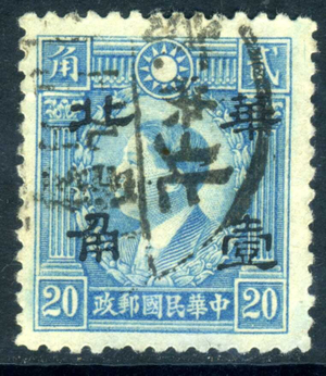 North China 1943 Japanese Occ 20¢ Full Value HK Martyr VFU F530