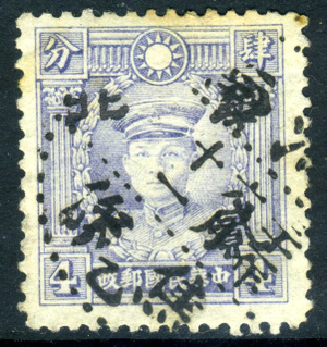 North China 1943 Japanese Occ 4¢ Full Value NP Martyr VFU J234