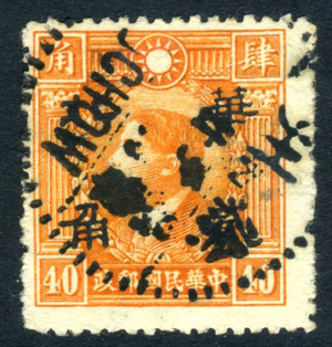 North China 1943 Japanese Occ 40¢ Full Value HK Martyr VFU F637