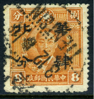 North China 1943 Japanese Occ 8¢ Full Value NP Martyr VFU F355