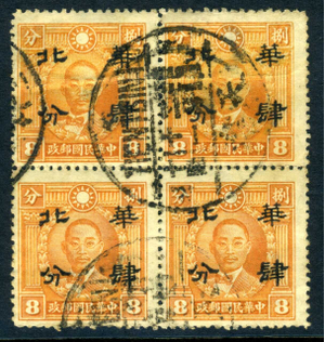 North China 1943 Japanese Occ 8¢ Full Value NP Martyr VFU S711