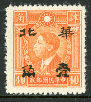 North China 1945 Japan Occ 10¢/40¢ Full Value OP w/Kalgan Black Surcharge F682