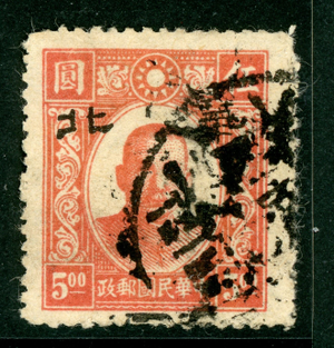 North China 1945 Japan Occupation 5.00 Red Sin Min SYS Scott #8N115 VFU J402