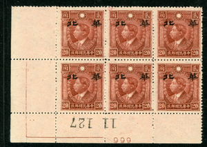 North China 1947 Japanese Occ 20¢ Inscription Block CSS #NC181 Mint U132