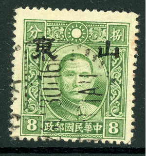 Shantung 1942 Japan Occ 8¢ Dah Tung Moss Green Large OP Scott 6N21v VFU J155