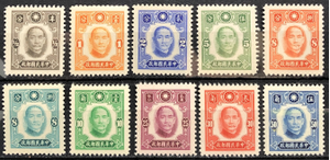 Dr. Sun Yat-sen, 1941. Printed by American Bank Note Co. Partial set of 10 including 449-455 and 457-459.