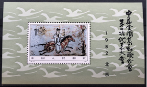 Messenger, Tomb Mural, Jiayu Pass, Wei-Jin Period. All-China Philatelic Federation, 1st Congress, 1982. Souvenir sheet.