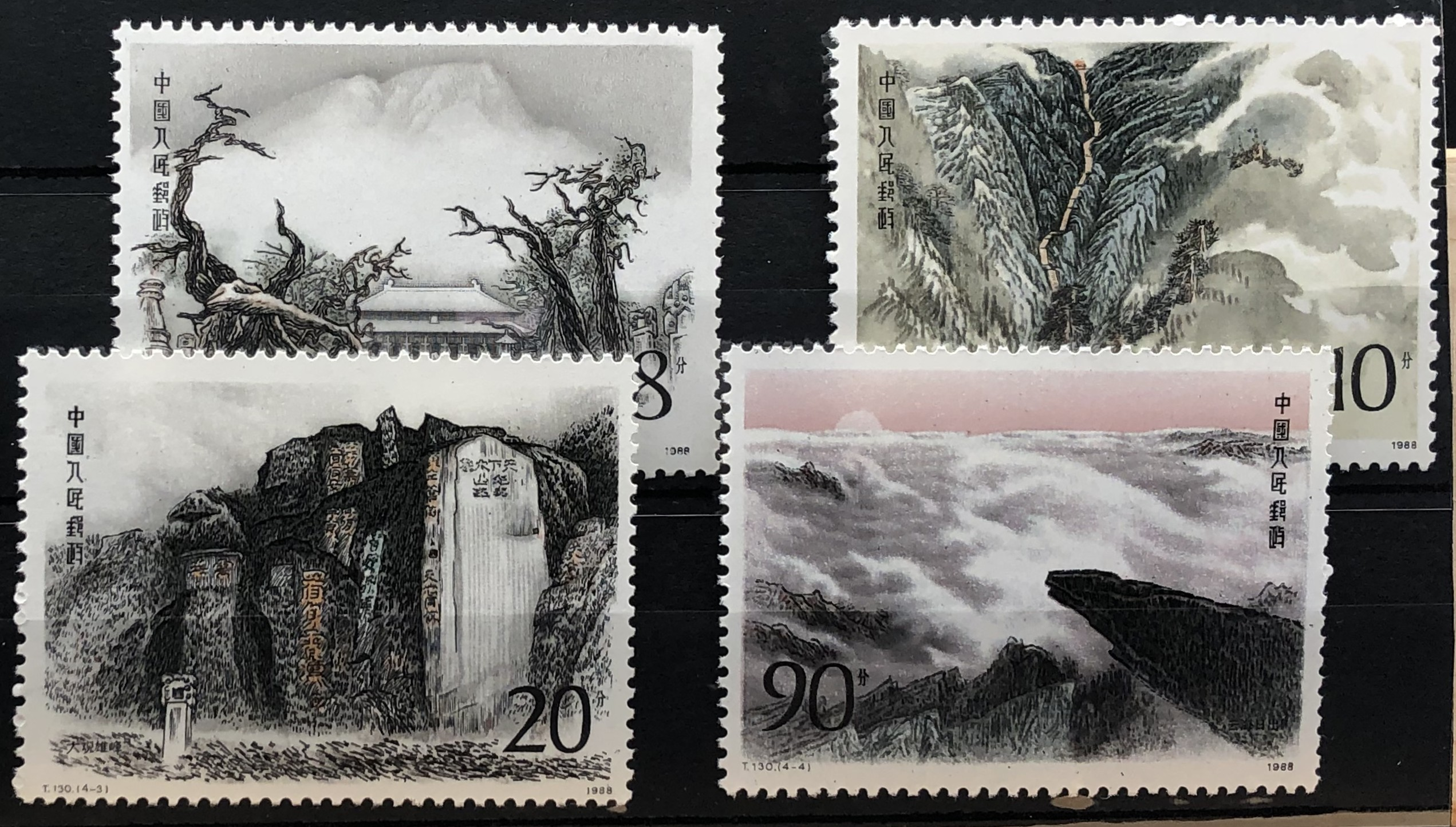 Mt. T'ai Shan, Shantung Province, T'ai Shan Temple, Ladder fo Heaven, Daguang peak, Sun-watching peak, 1988. Complete set of 4.